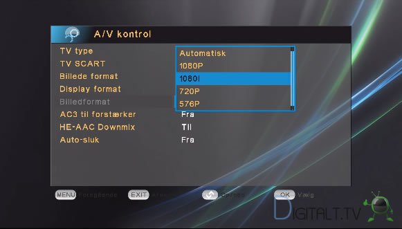 Der er mulighed for også at opsætte videoudgangen manuelt til 576i, 576p, 720p, 1080i eller 1080p.