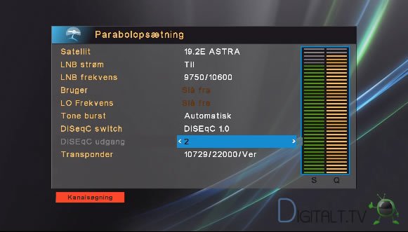 Vælger du satellit-tv skal du naturligvis opsætte efter dine signalforhold, f.eks. med korrekt DiSEqC port ved modtagelse via flere LNB hoveder osv.