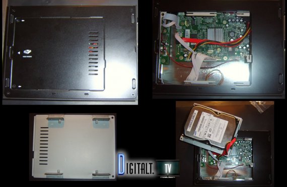 Monteringen sker enkelt ved at skrue to skruer af i bunden og afmontere bundpladen. På denne plade skrues harddisken fast med de medfølgende skruer. Når strøm og datakabel er sluttet til, så er det bare at skrue bundpladen fast igen, og harddisken er klar til formatering via menuen. Se evt. også videoen lidt længere nede på denne side.