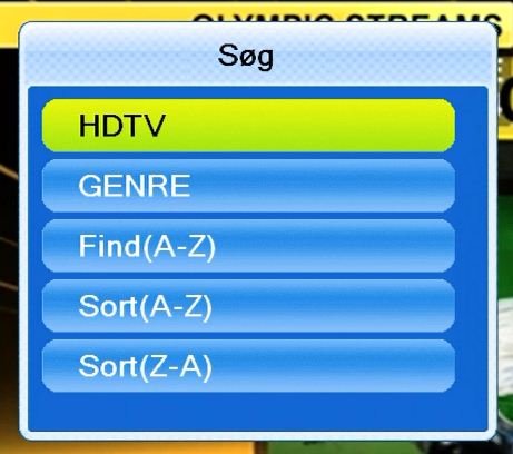 En ganske nyttig funktion har du ved at trykke på Find knappen på fjernbetjeningen. Så kan du få sorteret kanallisten efter flere parametre som f.eks. HDTV kanaler.