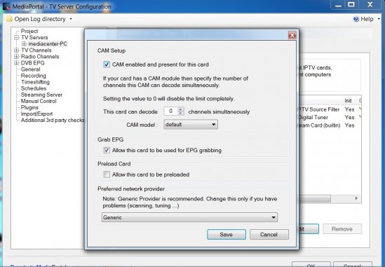 Cam delen skal aktiveres manuelt via opsætningen i MediaPortal, men så virker også denne del.