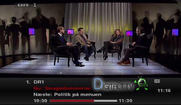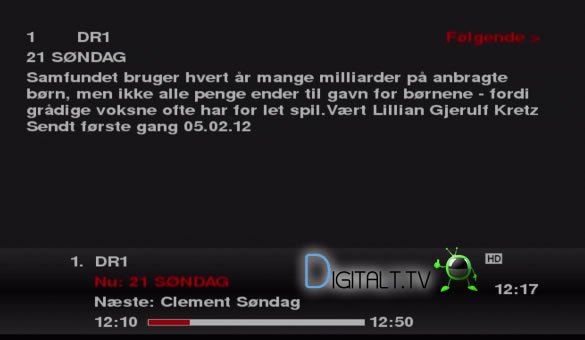 Der vises naturligvis simpel info banner ved kanalskifte med nu og næste information og via info knappen er der også programomtale visning.
