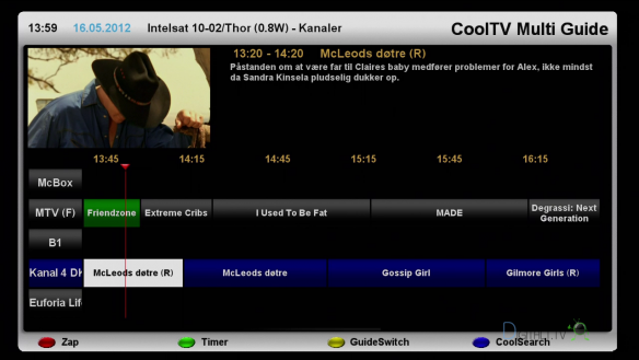 Med de mange opsætningsmuligheder i softwaren er der utroligt mange muligheder for at tilpasse boksen til din egen smag f.eks. i forhold til EPG visning. Billedet herover er Cool TV guide som er forinstalleret på OpenAAF imaget.