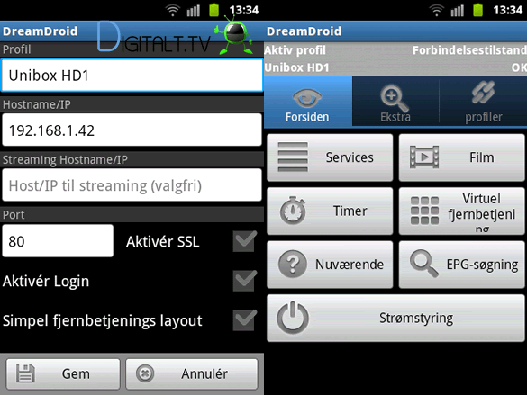 Som med andre Enigma baserede bokse, så kan du også med UNiBOX HD1 betjene den via din smartphone. På Android via gratis DreamDroid og på iPhone via dreaMote Pro, der koster 12,-.