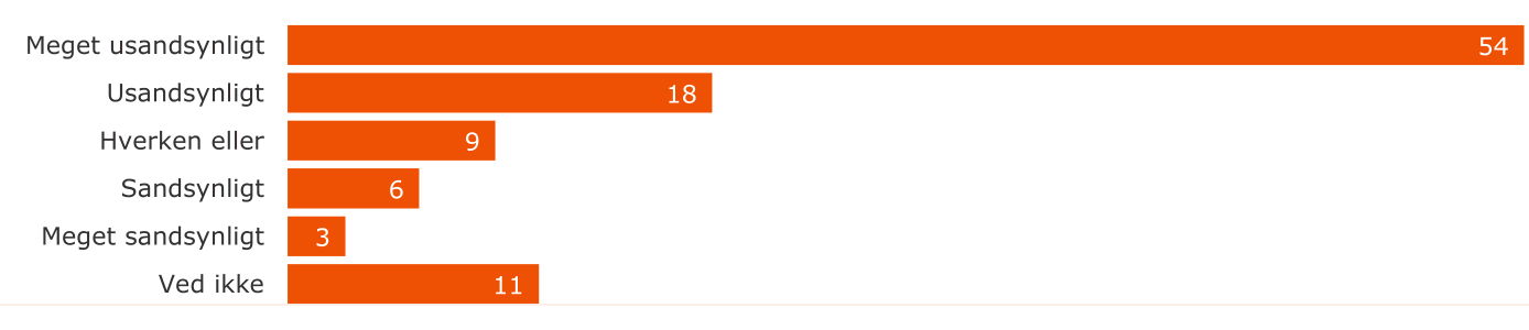 Selv om streaming er blevet særdeles populært, så er det ikke alle, der forventer at skulle til at abonnere og betale for en streamingtjeneste. På spørgsmålet “Hos hvilken streamingtjeneste overvejer husstanden at tegne et abonnement?” til personer der ikke i dag abonnerer på en streamingtjeneste, svarer over halvdelen, at de finder det meget usandsynligt, at de skulle skaffe sig et sådant.