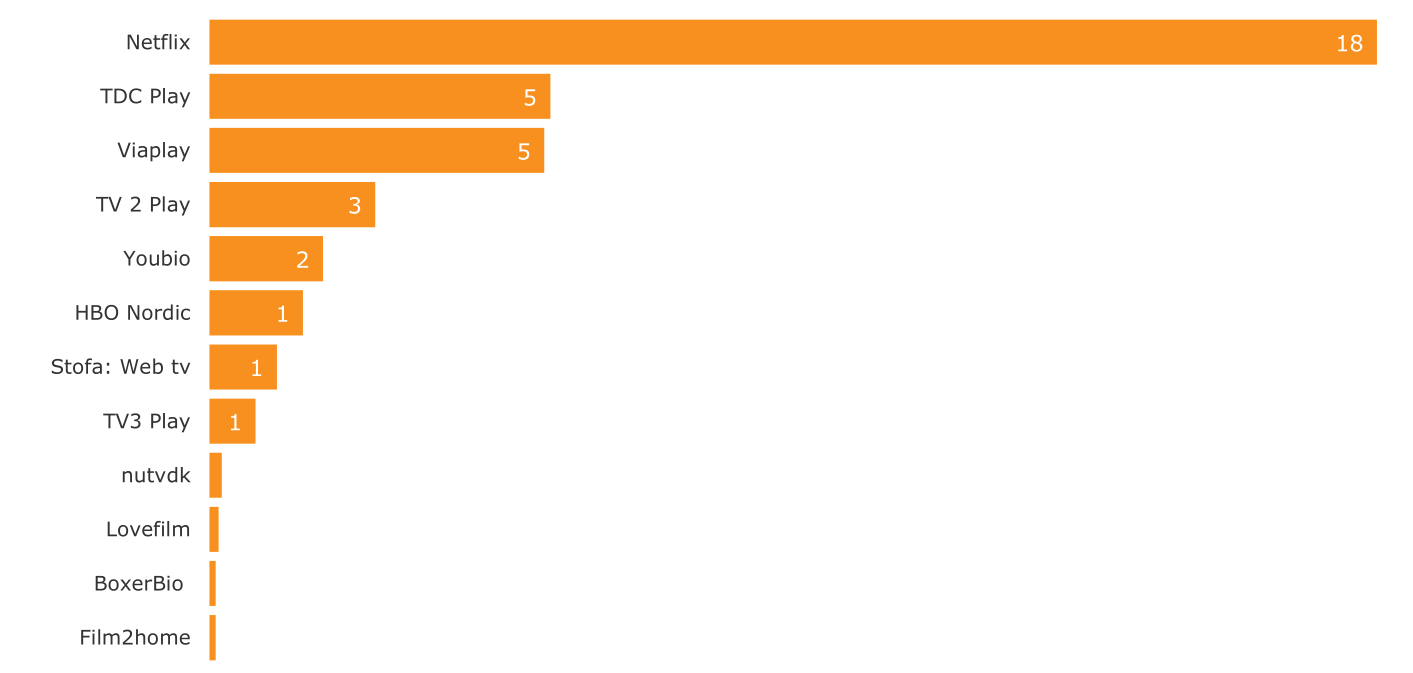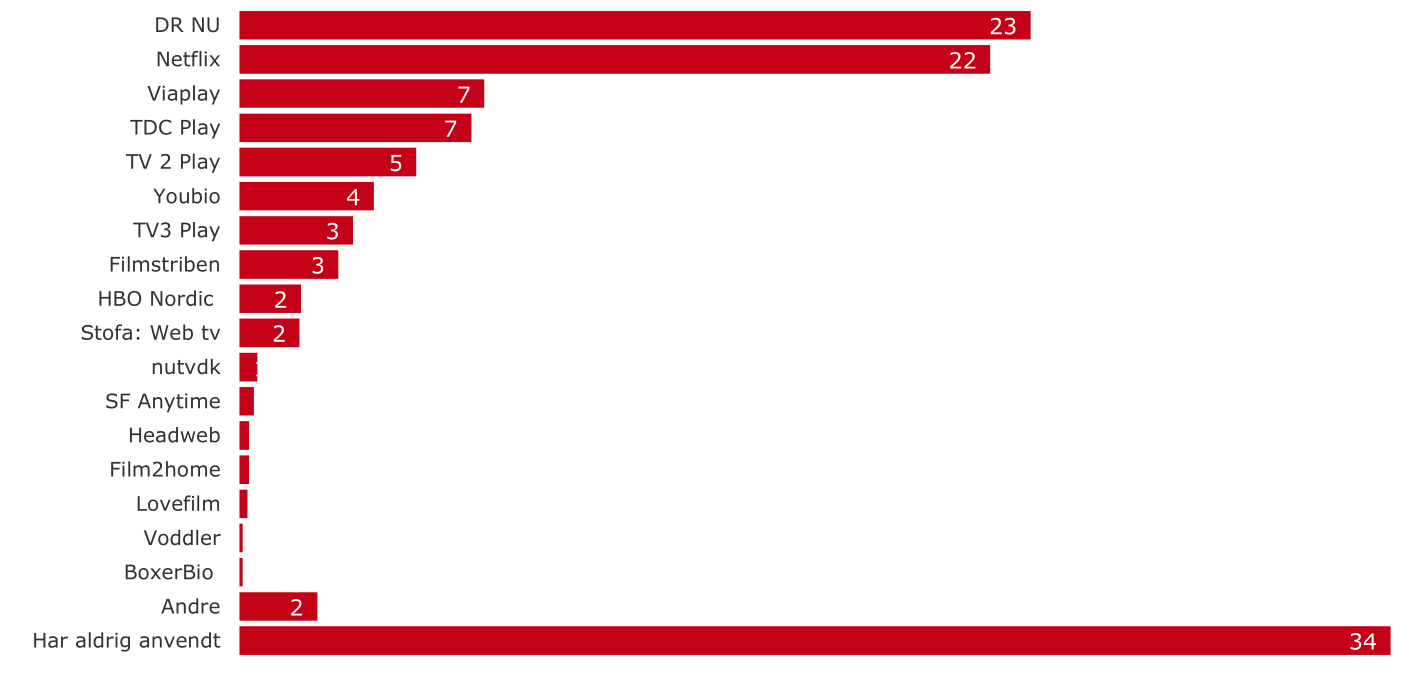 Som det kan ses så er danskernes foretrukne streamingtjeneste DR Nu, der er skarpt forfulgt af Netflix. En række tjenester er dårligt nok målbare i de tal som TNS Gallup har fremlagt.
