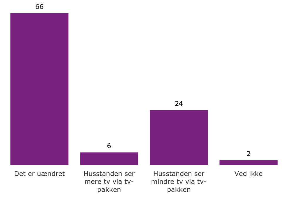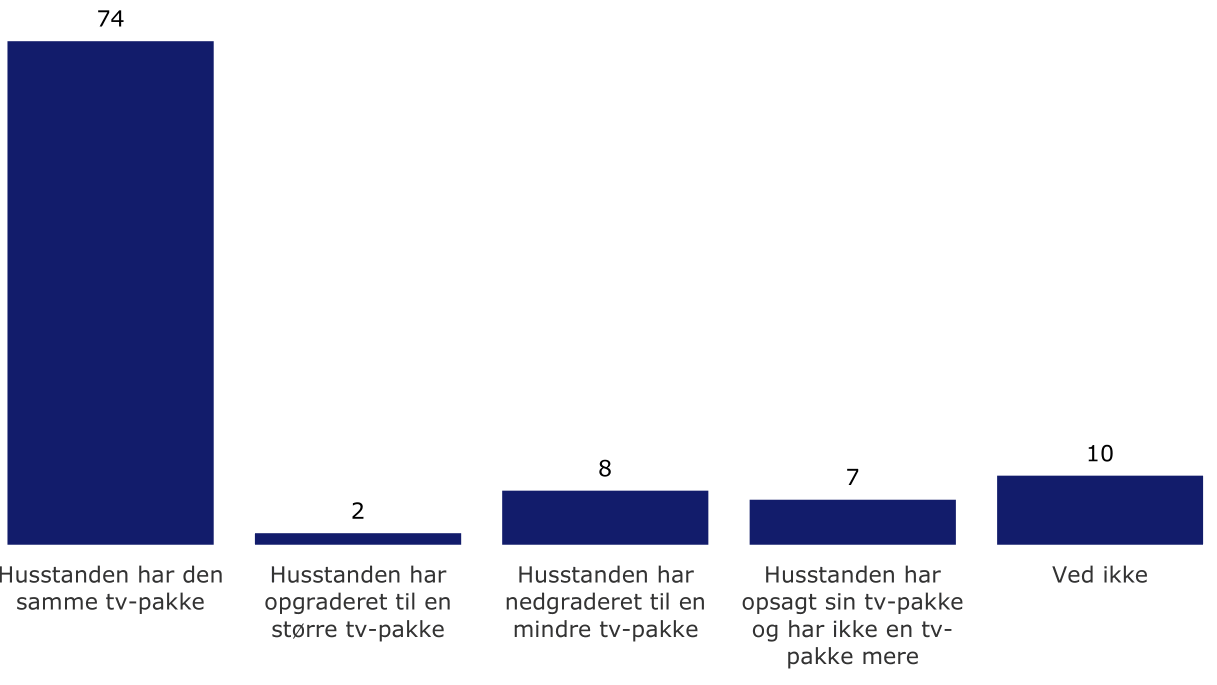 Selv om der tales meget om at streaming tjenesterne flytter tv-forbrugerne til mindre tv-pakker, så svarer 74% faktisk at deres abonnement hos en streamingtjeneste ikke har haft indflydelse på husstandens tv-pakke.
