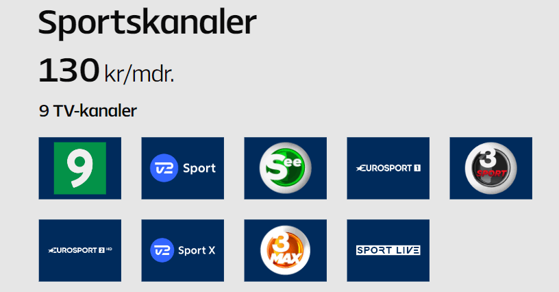 Enten med sports TV-kanaler til 130 kr./mdr. eller med både sportskanaler og Viaplay Total til til 449kr/mdr.
