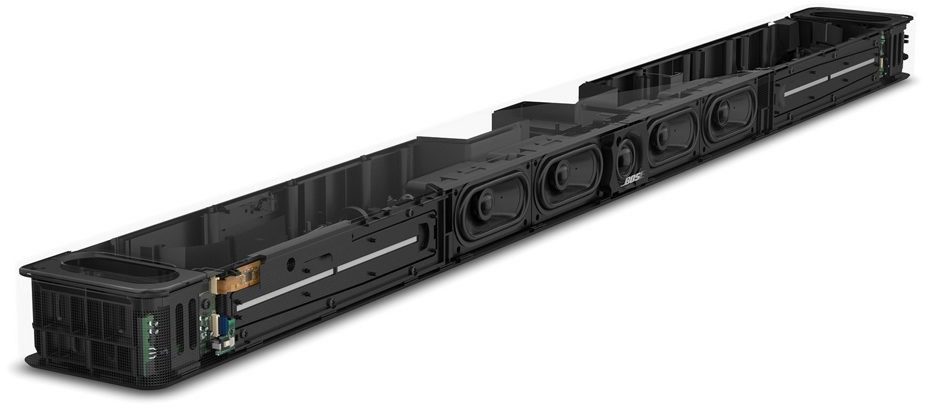Med Bose proprietære rumlige teknologier løfter 900 modellen Dolby Atmos-indhold ved at adskille instrumenter, dialog og effekter og placerer dem derefter i diskrete dele af et rum – langt over rummet og yderst til højre og venstre. Det løfter også andet indhold end Dolby Atmos ved at give en sammenlignelig oplevelse, uanset hvad du lytter til eller ser.