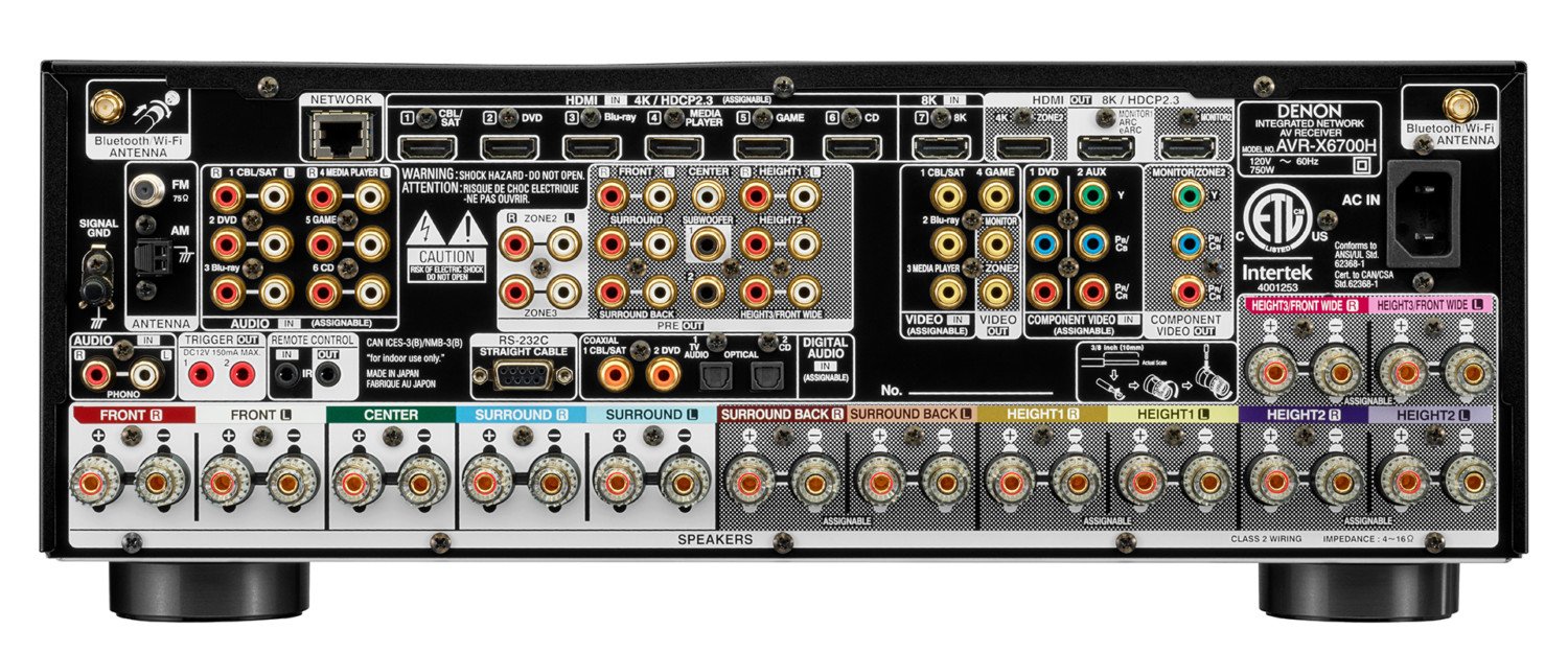 Der er proppet med tilslutningsmuligheder på 11 kanals topmodellen AVR-X6700H, der også understøtter det objektorienterede lydsystem DTS:X Pro.