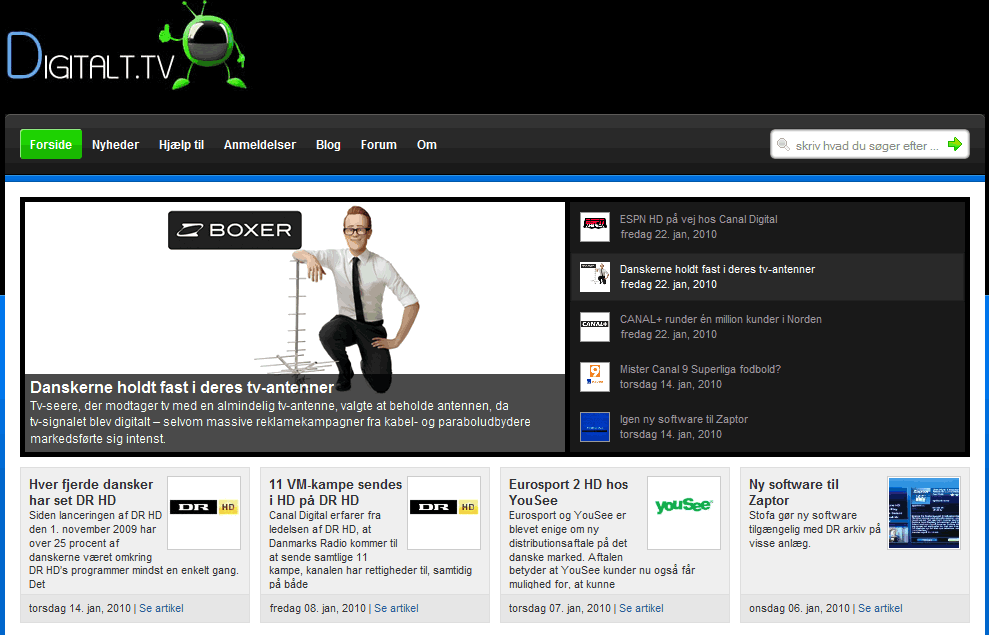 Det nye DIGITALT.TV er i luften! Efter at have arbejdet i flere måneder først på det ene system, så startede jeg forfra i november med denne udgave som nu er kommet online. Mange timers arbejde ligger bag også flere end jeg havde planlagt, men jeg glad for at det nu endelig står klart. Sitet er nu baseret på blogsoftwaren Wordpress med en række udvidelser, alt sammen forhåbentligt med til at give en bedre og mere brugervenlig oplevelse på digitalt.tv.