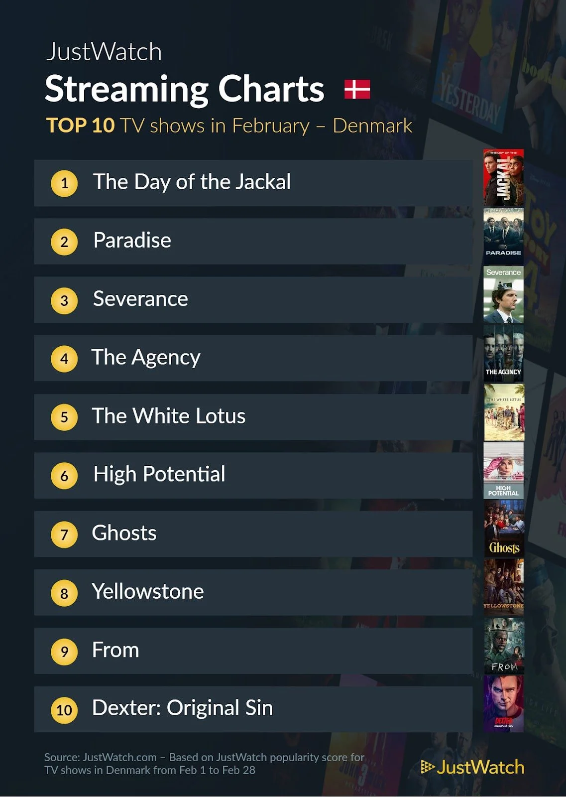 Vi er kommet forbi årets korteste måned, februar og søgetjenesten JustWatch gjort lidt status blandt sine danske brugere for DIGITALT.TV med Top 10 lister over de mest efterspurgte Film og Serier.