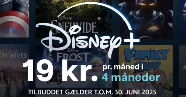 Disney+ gået i luften med et særligt tilbud til nye og tilbagevendende kunder. De kan nemlig fra den 11.-30. juni abonnere på Disney+ Standard med reklamer for blot 19 kr. om måneden i fire måneder – en besparelse på 120 kr. sammenlignet med den almindelige månedlige pris for fire måneder.