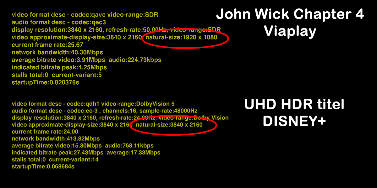 Vi tjekkede John Wick: Chapter 4 via Apple TV 4K med udviklerværktøj for at se bitrate og her afslørede de tekniske data faktisk, at der reelt kun streames i 1920×1080.