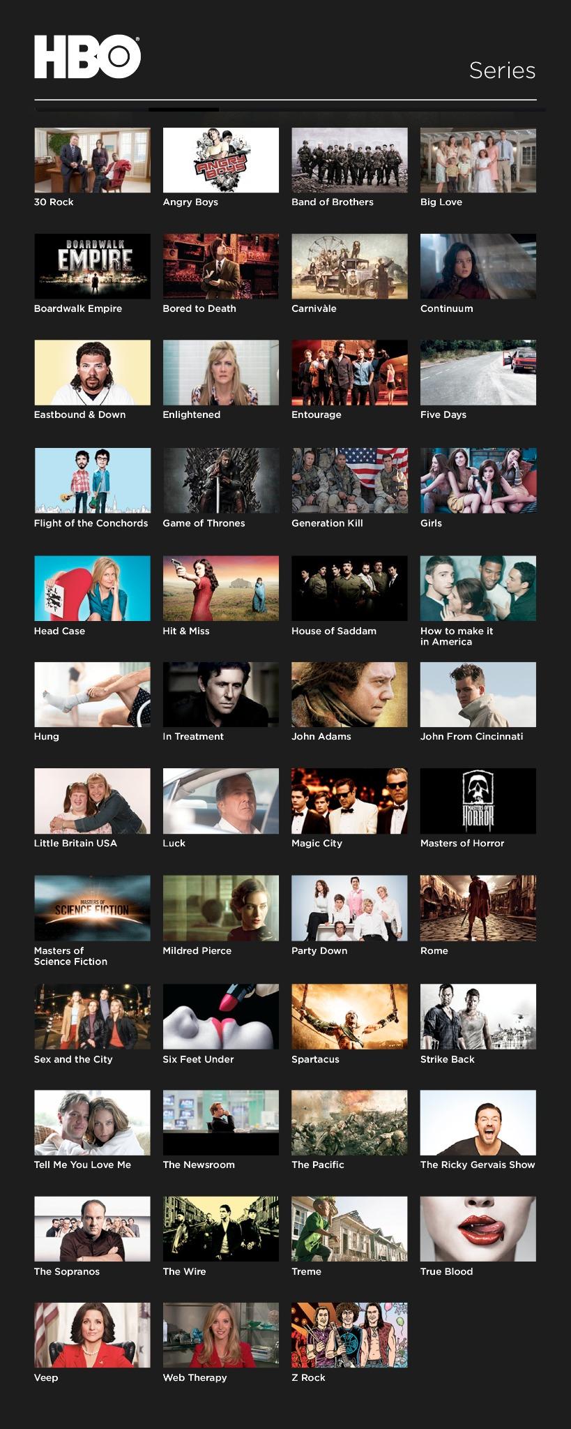 HBO har offentliggjort et billede så du kan få et indtryk af hvilke serier du kan se inden du bestiller.