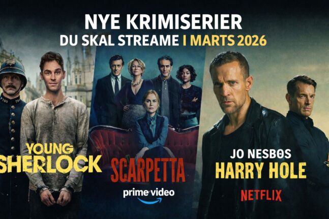 Marts 2026 ser ud til at blive en usædvanlig stærk måned for krimielskere. Streamingtjenesterne blænder op for alt fra Guy Ritchies nye fortolkning af Sherlock Holmes til Jo Nesbøs længe ventede Harry Hole-serie på Netflix.