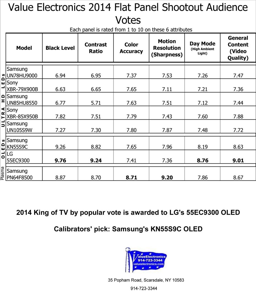 Amerikanske Value Electronics samler hvert år en række af de mest anerkendte fladskærme, får dem kalibreret og optimeret, hvorefter eksperter og almindelige tv-forbrugere kigger nærmere på de enkelte skærme i forhold til en række parametre som sortniveau, farvegengivelse med mere.