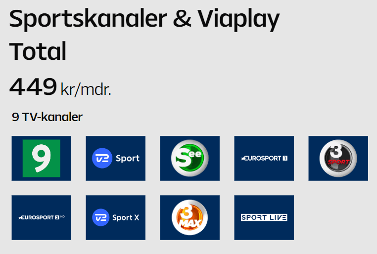 Tager man Flex 4 pakken og tilkøber Viaplay Total + sports tv-kanaler, så havner regningen, med den nye pakke struktur, på 1078,- / måned.
