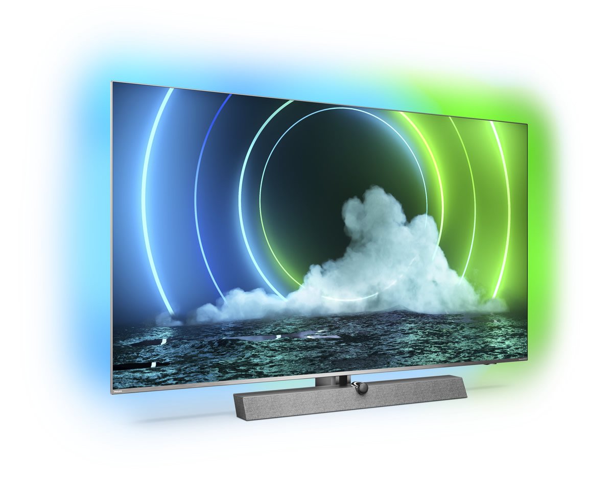 Både OLED806 og OLED856 har et ultratyndt, rammefrit design med en metalramme, så tynd, at der nærmest er en usynlig overgang til Ambilight-belysningen af bagvæggen på de fire sider.