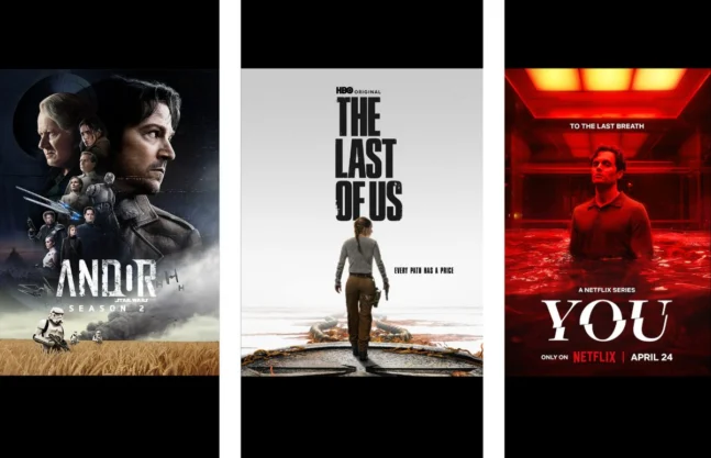 The Last of Us er tilbage på Max med sin anden sæson fra 14. april. Nye afsnit af Andor starter 23. april på Disney+, mens Netflix runder serien You af med en sæson 5 fra 24. april.