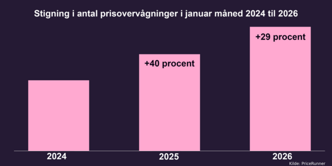 Flere danskere går ind i 2026 med et skarpere blik på priserne end tidligere. I årets første måned er der oprettet 28 procent flere prisovervågninger hos prissammenligningstjenesten PriceRunner.dk – sammenlignet med januar 2025.
