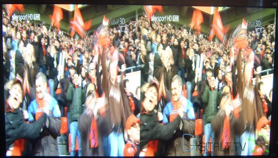 Her et billede fra kanalen med side by side 3D. (Tysk Sky Sport Bundesliga i 3D som demoklip)