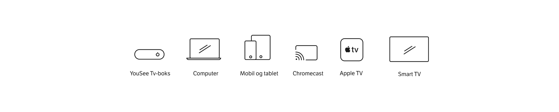 Men du kan også se YouSee Play på mange andre enheder. Du tage dine tv-kanaler og streamingtjenester med dig overalt og se dem, når og hvor du vil. I sofaen, i sommerhuset, eller når du rejser i EU.